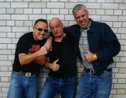 In 2009 Batmobile has joined our booking agency. Please contact us to ask for conditions and dates. Batmobile was founded 1983. After several months of covering Elvis Presley, Johnny Burnette and Gene Vincent, Jeroen Haamers (vocals/guitar), Johnny Zuidhof (drums) and Eric Haamers (double bass) decided to start to write their own material and all of a sudden people started to call the mental Dutch threesome 'psychobillies'. In 1985 the first Batmobile album was released, which led to international recognition. For the first time a non-british band headlined all international psychobilly festivals. The second half of the eighties and the first half of the nineties the band is touring through Germany, France, Japan, Spain, Switzerland, Italy, Austria and England. The band is headlining numerous times in the legendary KlubFoot in London. The releases of the band are consistent in the concept of sounding different every time. The band hates to cover itself so the Batmo gents are always in search of new sounds within the rockabilly/psychobilly spectrum. This leads to the very first (and ever so often copied) metal-sounds within the scene on their 1988 realease Bail's Set...... but ofcourse also to the back to basics release Amazons from Outer Space (1989) and the massive concept mini-album Batmobile is Dynamite (1990). If ever there's a band ahead of things within rockabilly/psychobilly it's Batmobile. In 1997 the band waves psychobilly goodbye and introduces their own brand of Rock n Roll B-music. Like in a B-film, B-music stand for B-musicians, bad (read: funny) jokes, horror, naked women and having the time of your life. So there is not a big difference with decent psychobilly. The second half of the nineties Batmobile does a lot of concerts in the Jukebox Tour in which the audience decides what the band should play. Their first concert in New York is being taped and released on film and will be the last concert before a 3 year break. In 2001 the album titled A Tribute To Batmobile is released on a Japanese label. On the album all kinds of bands from all over the world play Batmobile songs. Batmobiles own contribution on the album is called Baby Go Back Home. In 2003 'A Tribute to Batmobile part 2' was released and the band recorded the song Deep Down for it. In 2003 the band makes one live appearance in Germany which makes Batmobile decide to start doing more live performances again starting 2004. Since then they have been doing concerts in the Netherlands, Japan, Russia, Finland, Sweden, Germany, Belgium, Brazil and the US/Hollywood. Now the band just contributed a live version of Kiss Me Now on the Kaiser Records 'Soundtrack to Oblivion' and has recorded the old Warren Smith classic Ubangi Stomp for the Stray Cats Tribute record 'Go Cat Go' for Baseline Music.